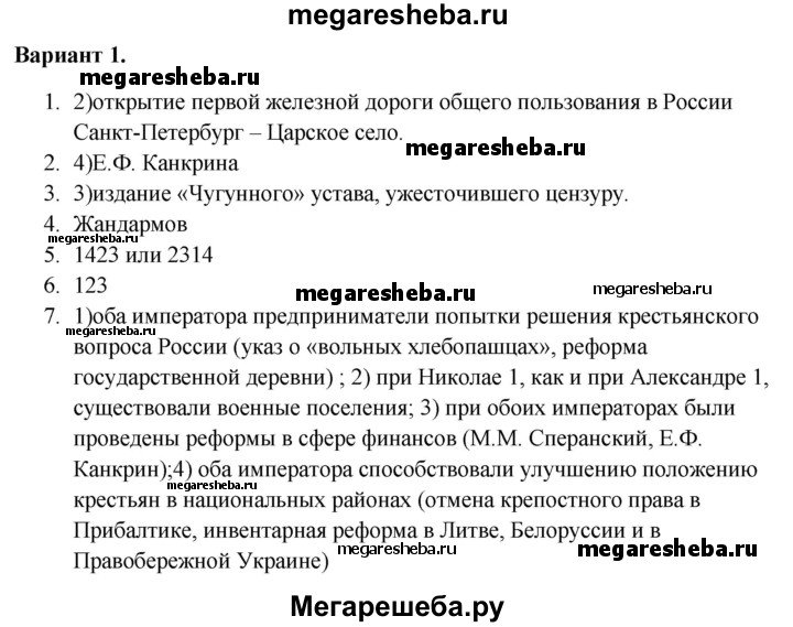 ГДЗ по истории 9 класс Артасов тематический контроль тема 1 СР-4 - Вариант 1