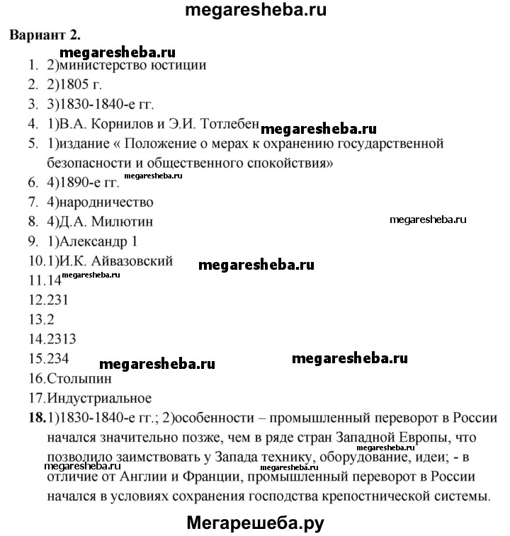 ГДЗ по истории 9 класс Артасов тематический контроль итоговая контрольная работа - Вариант 2
