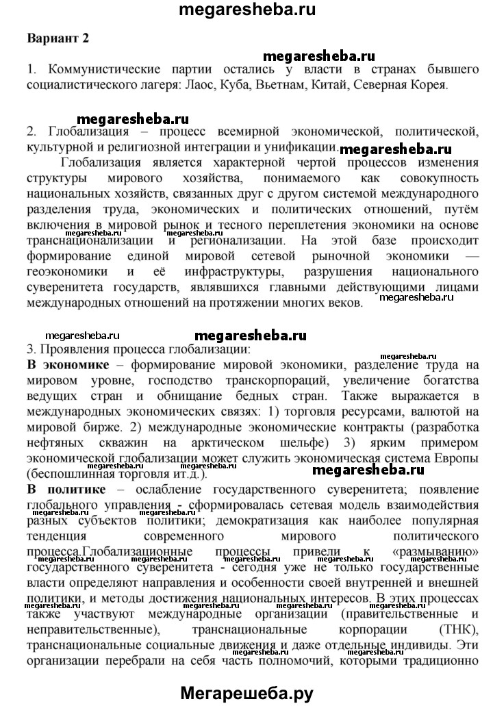 ГДЗ по истории 9 класс Тороп тетрадь-экзаменатор Новейшее время, XX — начало XXI века информационное сообщество проверочная работа №2 - Вариант 2