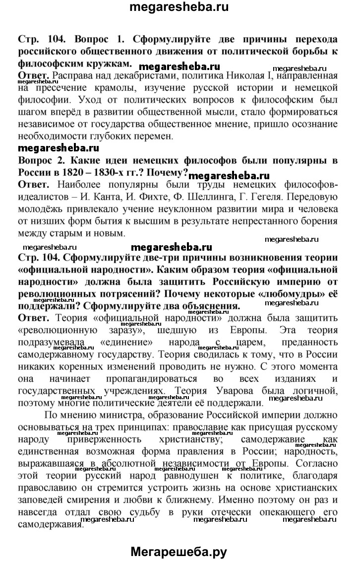 ГДЗ по истории 9 класс Вишняков страница - 104
