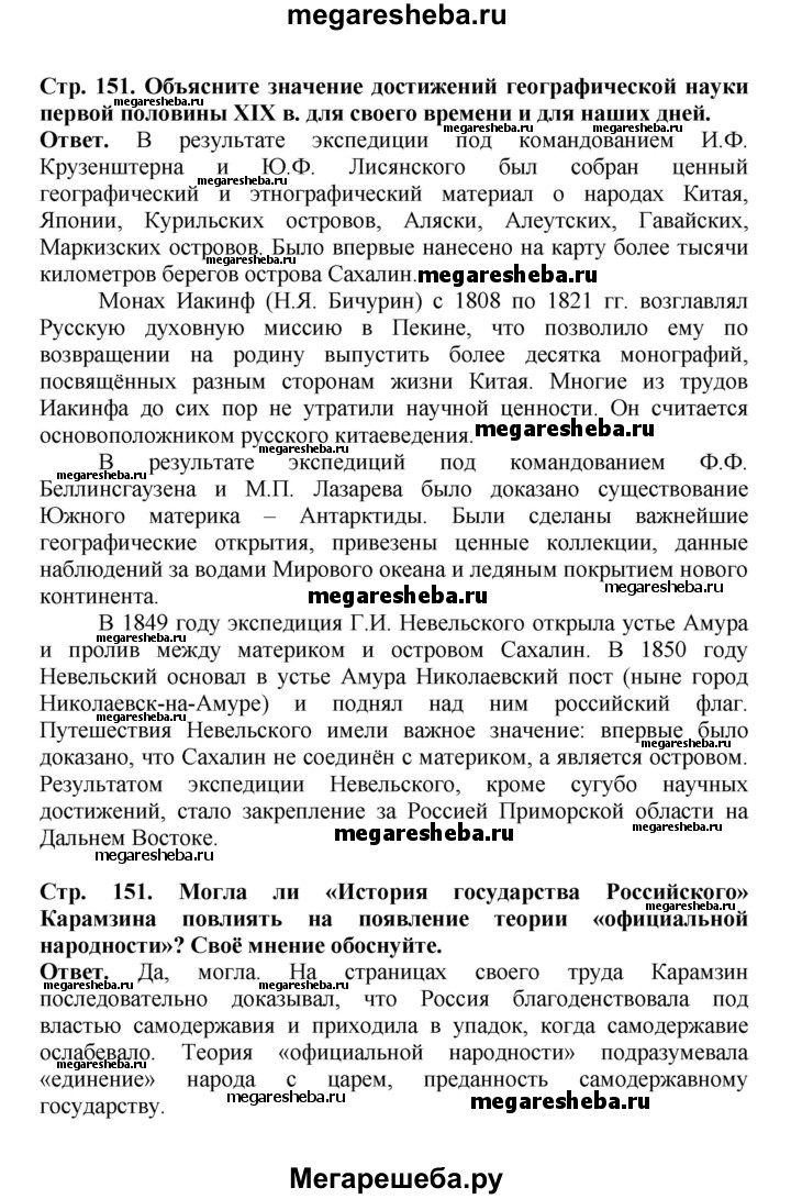 Подробный решебник (ГДЗ) по Истории за 9 (девятый) класс - готовый ответ страница - 151. Авторы учебника: Вишняков, Могилевский, Агафонов. Издательство: Просвещение 2021.