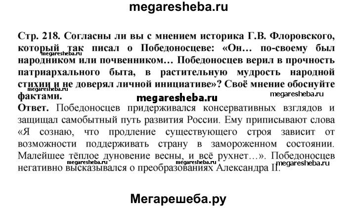 Подробный решебник (ГДЗ) по Истории за 9 (девятый) класс - готовый ответ страница - 218. Авторы учебника: Вишняков, Могилевский, Агафонов. Издательство: Просвещение 2021.