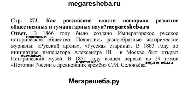 Подробный решебник (ГДЗ) по Истории за 9 (девятый) класс - готовый ответ страница - 273. Авторы учебника: Вишняков, Могилевский, Агафонов. Издательство: Просвещение 2021.
