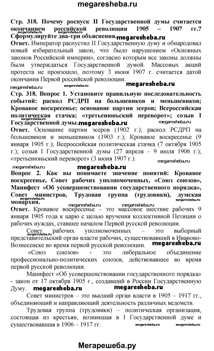 ГДЗ по истории 9 класс Вишняков страница - 318