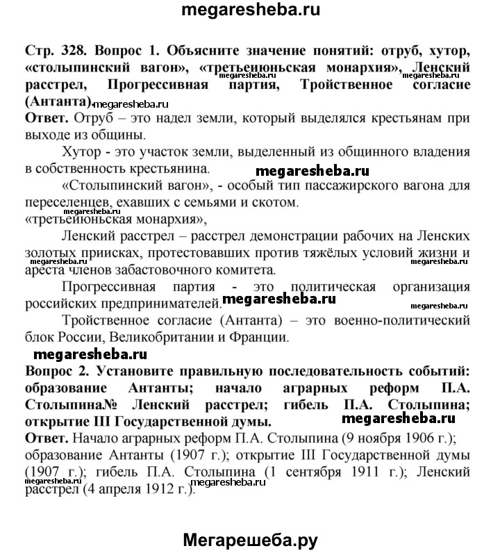 Подробный решебник (ГДЗ) по Истории за 9 (девятый) класс - готовый ответ страница - 328. Авторы учебника: Вишняков, Могилевский, Агафонов. Издательство: Просвещение 2021.