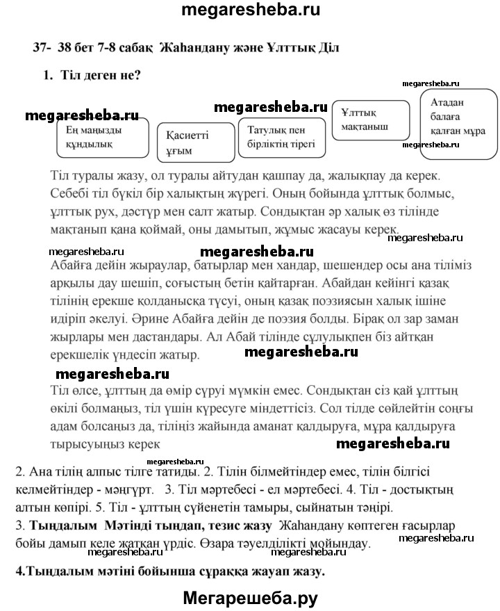 Подробный решебник (ГДЗ) по Казахскому языку за 9 (девятый) класс - готовый ответ страница - 37. Авторы учебника: Дәулетбекова, Рауандина, Дусимбаева. Издательство: Атамұра 2019.