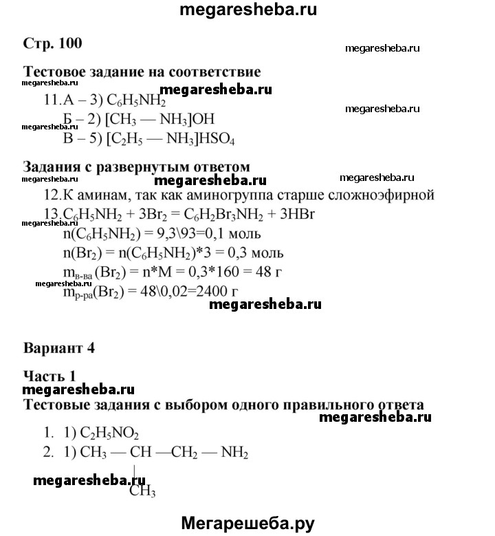 ГДЗ по химии 10 класс Габриелян проверочные и контрольные работы Базовый уровень страница - 100