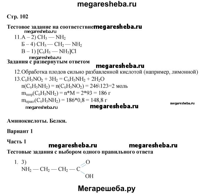 ГДЗ по химии 10 класс Габриелян проверочные и контрольные работы Базовый уровень страница - 102