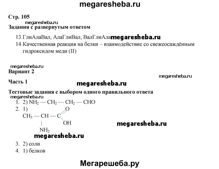 ГДЗ по химии 10 класс Габриелян проверочные и контрольные работы Базовый уровень страница - 105