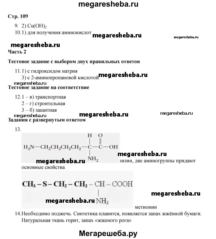 ГДЗ по химии 10 класс Габриелян проверочные и контрольные работы Базовый уровень страница - 109