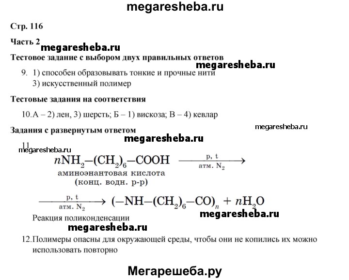 ГДЗ по химии 10 класс Габриелян проверочные и контрольные работы Базовый уровень страница - 116