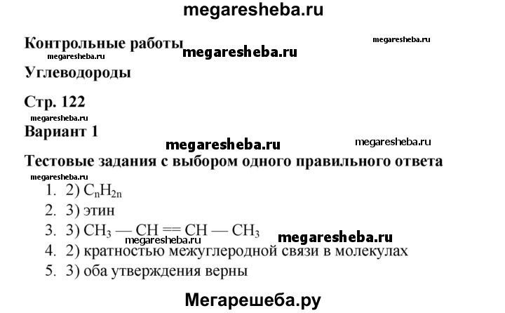 ГДЗ по химии 10 класс Габриелян проверочные и контрольные работы Базовый уровень страница - 122