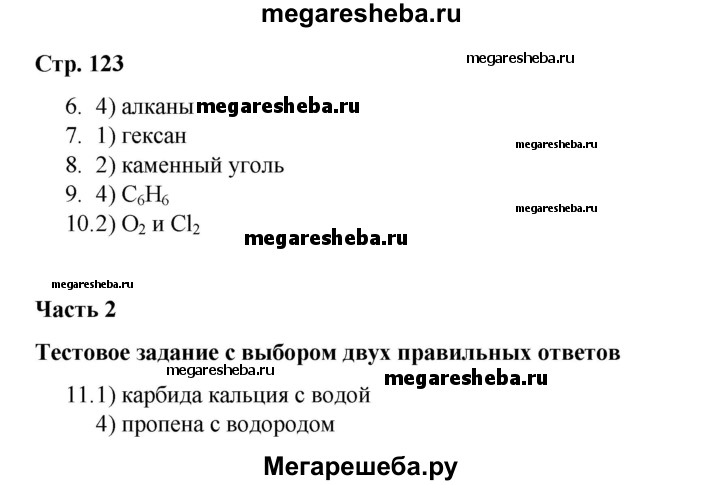 ГДЗ по химии 10 класс Габриелян проверочные и контрольные работы Базовый уровень страница - 123