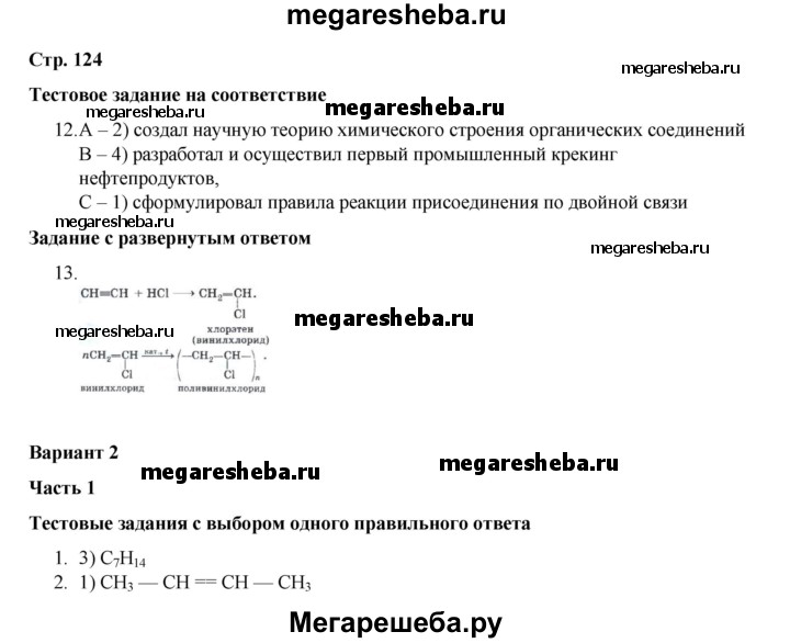 ГДЗ по химии 10 класс Габриелян проверочные и контрольные работы Базовый уровень страница - 124