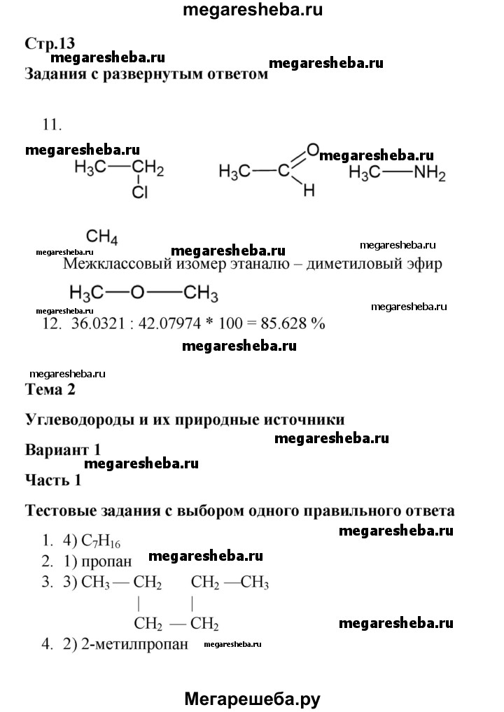Подробный решебник (ГДЗ) по Химии за 10 (десятый) класс проверочные и контрольные работы - готовый ответ страница - 13. Авторы учебника: Габриелян, Лысова, Базовый уровень. Издательство: Просвещение 2023.