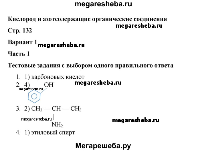 ГДЗ по химии 10 класс Габриелян проверочные и контрольные работы Базовый уровень страница - 132
