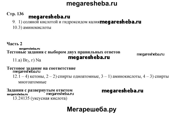ГДЗ по химии 10 класс Габриелян проверочные и контрольные работы Базовый уровень страница - 136