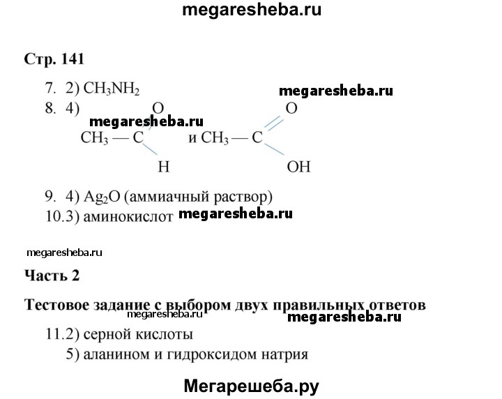 ГДЗ по химии 10 класс Габриелян проверочные и контрольные работы Базовый уровень страница - 141