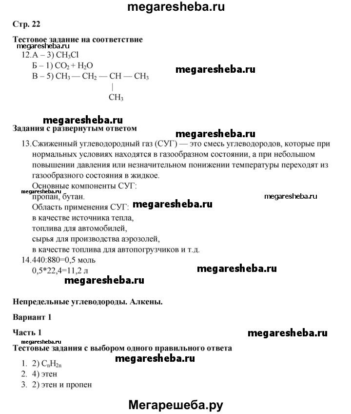 ГДЗ по химии 10 класс Габриелян проверочные и контрольные работы Базовый уровень страница - 22