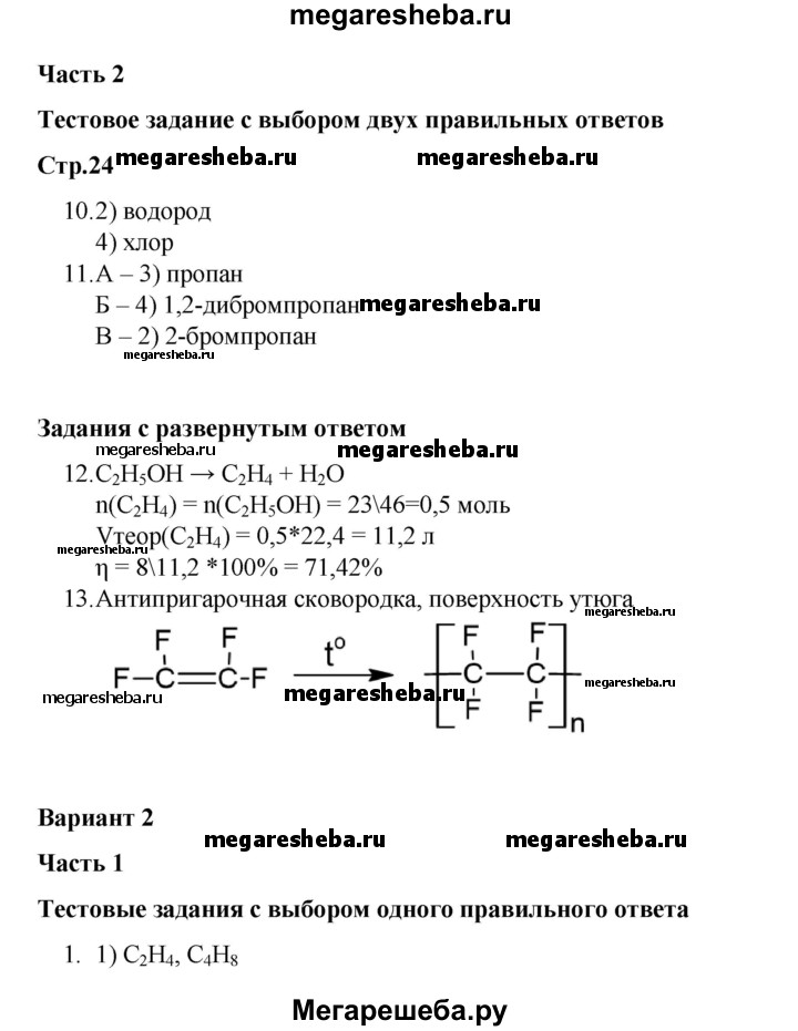ГДЗ по химии 10 класс Габриелян проверочные и контрольные работы Базовый уровень страница - 24