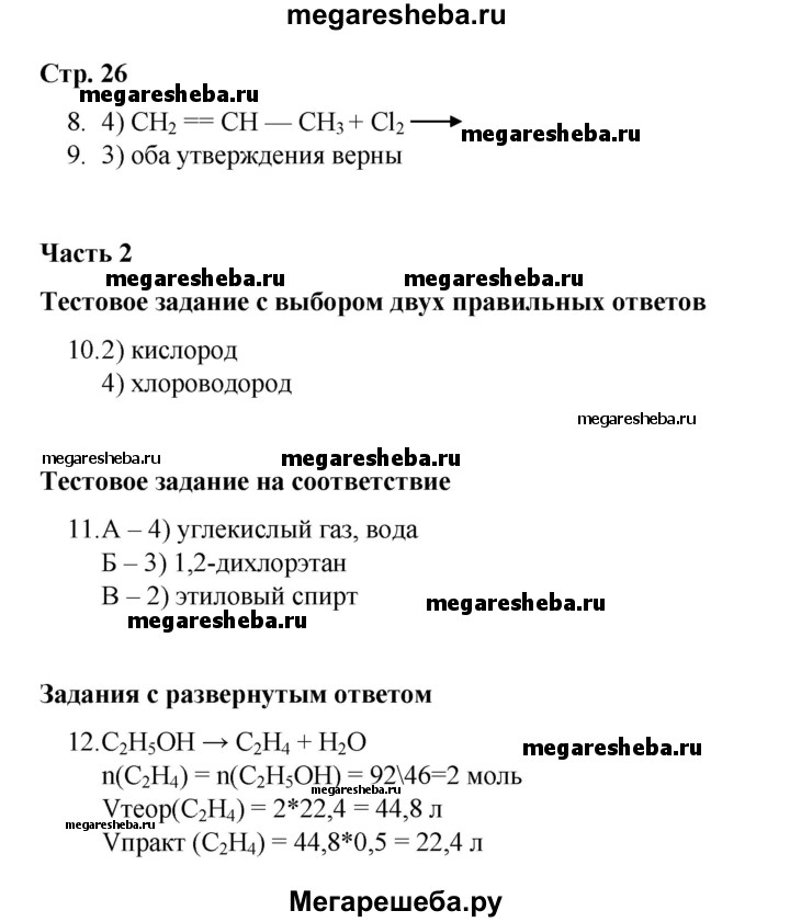 ГДЗ по химии 10 класс Габриелян проверочные и контрольные работы Базовый уровень страница - 26