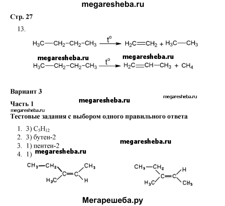 ГДЗ по химии 10 класс Габриелян проверочные и контрольные работы Базовый уровень страница - 27