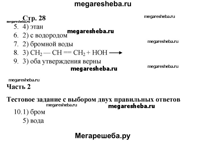 ГДЗ по химии 10 класс Габриелян проверочные и контрольные работы Базовый уровень страница - 28