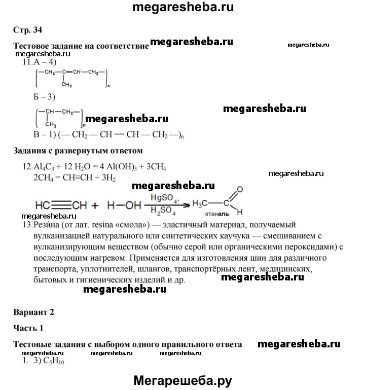 Подробный решебник (ГДЗ) по Химии за 10 (десятый) класс проверочные и контрольные работы - готовый ответ страница - 34. Авторы учебника: Габриелян, Лысова, Базовый уровень. Издательство: Просвещение 2023.