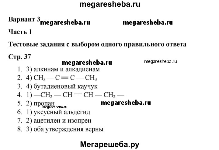 ГДЗ по химии 10 класс Габриелян проверочные и контрольные работы Базовый уровень страница - 37