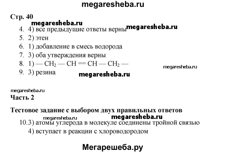 ГДЗ по химии 10 класс Габриелян проверочные и контрольные работы Базовый уровень страница - 40