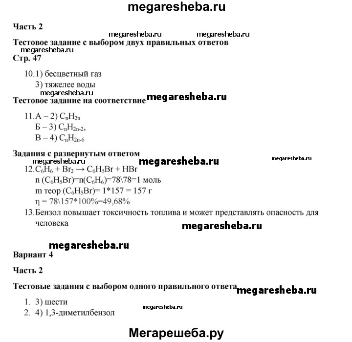 ГДЗ по химии 10 класс Габриелян проверочные и контрольные работы Базовый уровень страница - 47