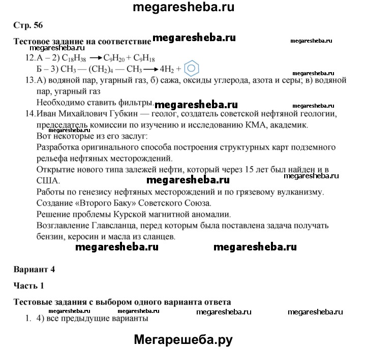 ГДЗ по химии 10 класс Габриелян проверочные и контрольные работы Базовый уровень страница - 56