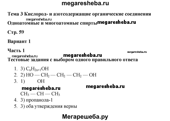 Подробный решебник (ГДЗ) по Химии за 10 (десятый) класс проверочные и контрольные работы - готовый ответ страница - 59. Авторы учебника: Габриелян, Лысова, Базовый уровень. Издательство: Просвещение 2023.