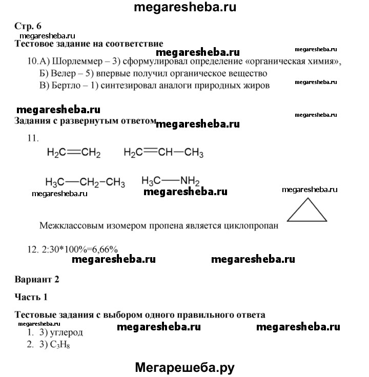 ГДЗ по химии 10 класс Габриелян проверочные и контрольные работы Базовый уровень страница - 6