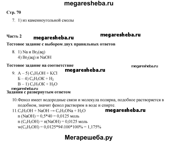 ГДЗ по химии 10 класс Габриелян проверочные и контрольные работы Базовый уровень страница - 70