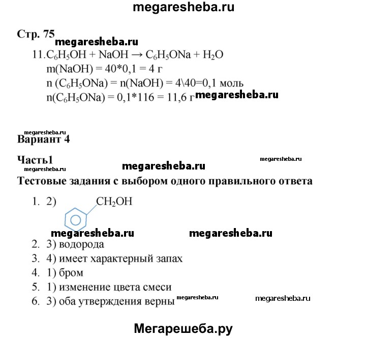 ГДЗ по химии 10 класс Габриелян проверочные и контрольные работы Базовый уровень страница - 75