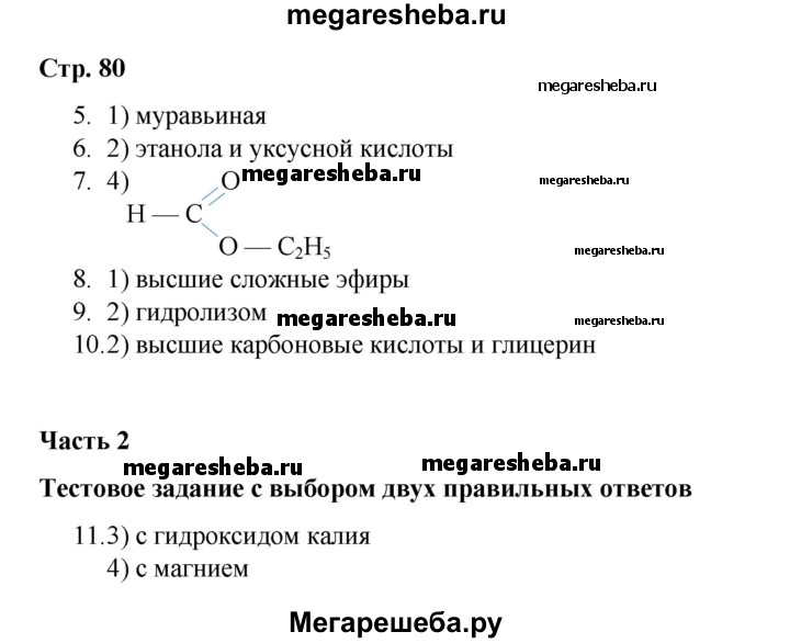 Подробный решебник (ГДЗ) по Химии за 10 (десятый) класс проверочные и контрольные работы - готовый ответ страница - 80. Авторы учебника: Габриелян, Лысова, Базовый уровень. Издательство: Просвещение 2023.