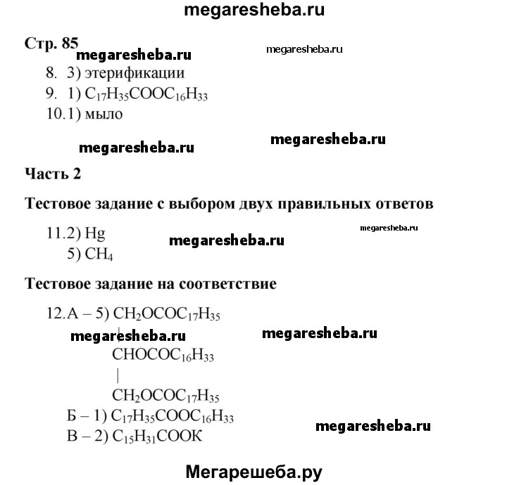 ГДЗ по химии 10 класс Габриелян проверочные и контрольные работы Базовый уровень страница - 85