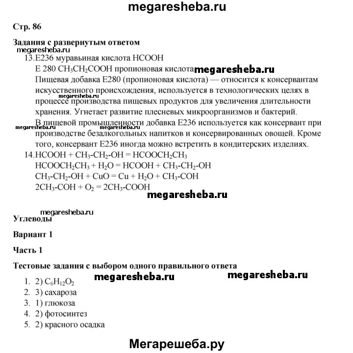 ГДЗ по химии 10 класс Габриелян проверочные и контрольные работы Базовый уровень страница - 86