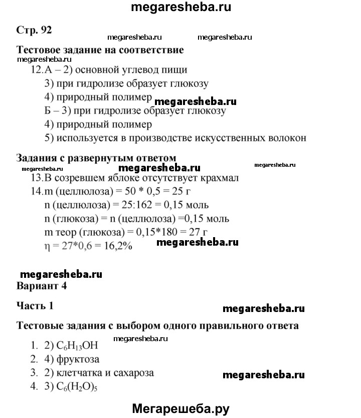 ГДЗ по химии 10 класс Габриелян проверочные и контрольные работы Базовый уровень страница - 92