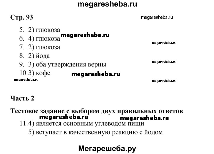 ГДЗ по химии 10 класс Габриелян проверочные и контрольные работы Базовый уровень страница - 93