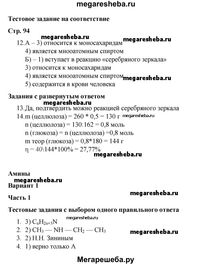 ГДЗ по химии 10 класс Габриелян проверочные и контрольные работы Базовый уровень страница - 94