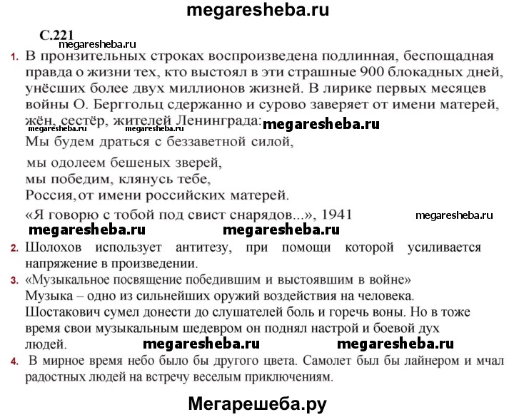 ГДЗ по литературе 11 класс Сенькевич страница - 221-222