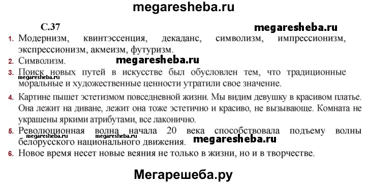 Подробный решебник (ГДЗ) по Литературе за 11 (одиннадцатый) класс - готовый ответ страница - 37-38. Авторы учебника: Сенькевич, Капшай, Кушнерёва, Темушева. Издательство: Национальный институт образования 2021.