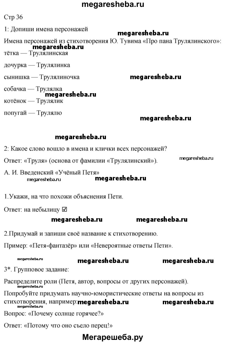 ГДЗ по литературе 2 класс Тихомирова рабочая тетрадь тетрадь №2. страница - 36