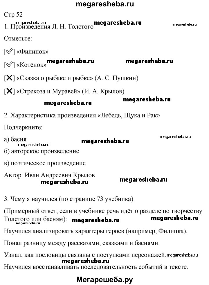 ГДЗ по литературе 2 класс Тихомирова рабочая тетрадь тетрадь №1. страница - 52