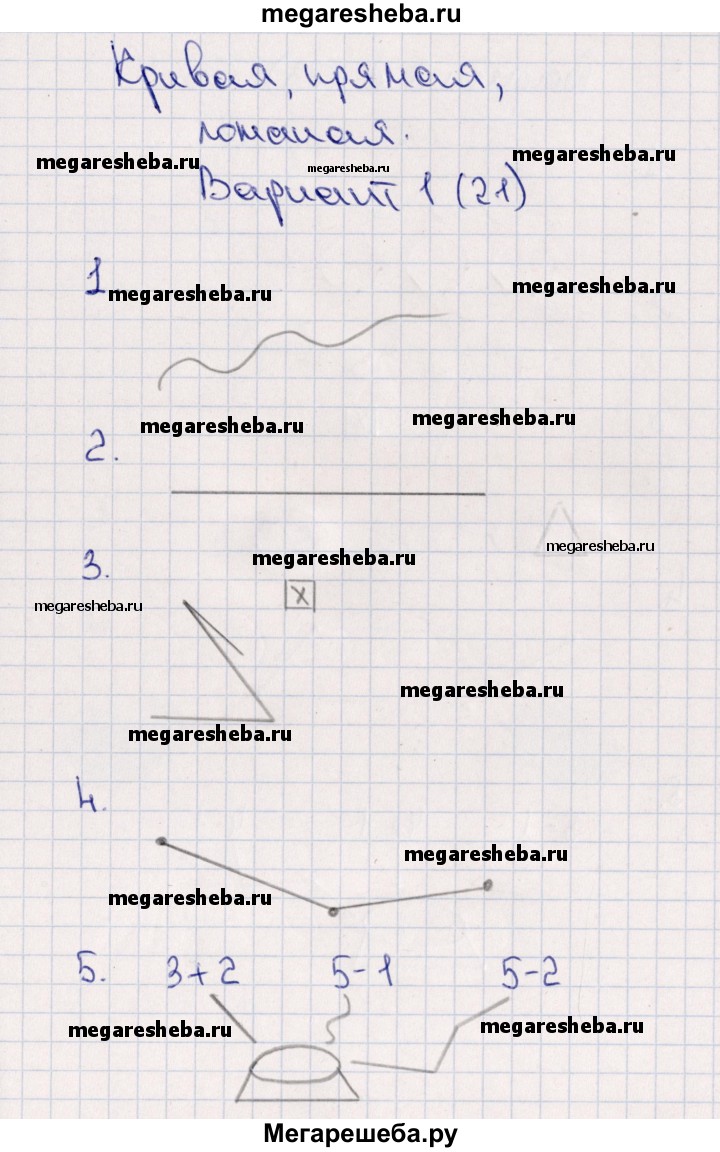 Подробный решебник (ГДЗ) по Математике за 1 (первый) класс самостоятельные работы к учебнику Моро - готовый ответ часть 1 кривая, прямая, ломанная - Вариант 1. Авторы учебника: Самсонова. Издательство: Экзамен 2014.