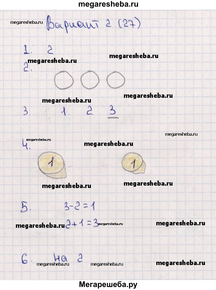 Подробный решебник (ГДЗ) по Математике за 1 (первый) класс самостоятельные работы к учебнику Моро - готовый ответ часть 1 числа 1, 2, 3. прибавление, вычитание - Вариант 2. Авторы учебника: Самсонова. Издательство: Экзамен 2014.