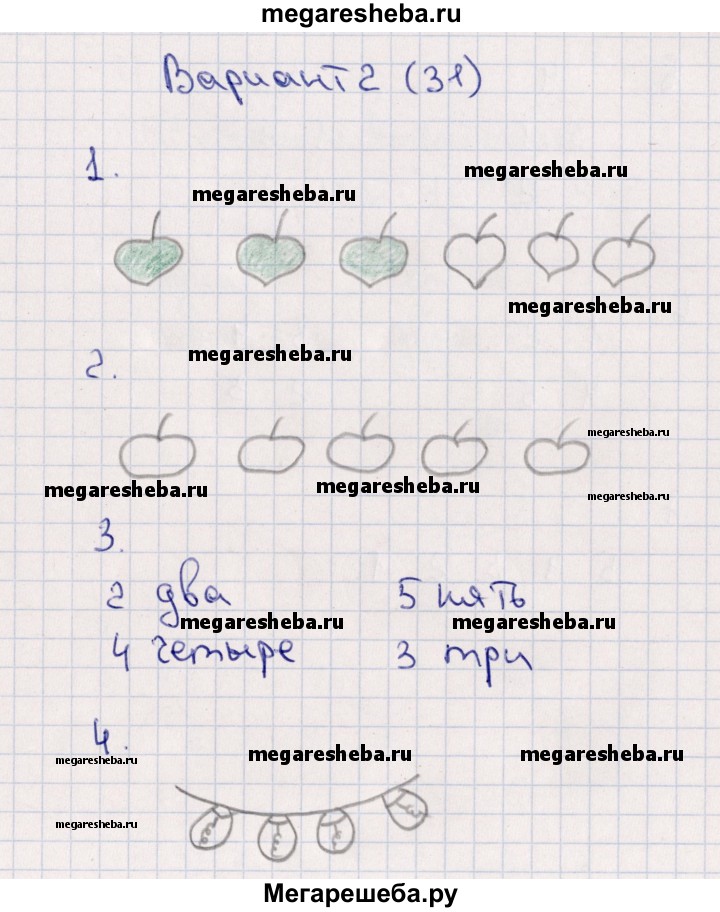 ГДЗ по математике 1 класс Самсонова самостоятельные работы к учебнику Моро часть 1 числа 1-5. состав чисел - Вариант 2