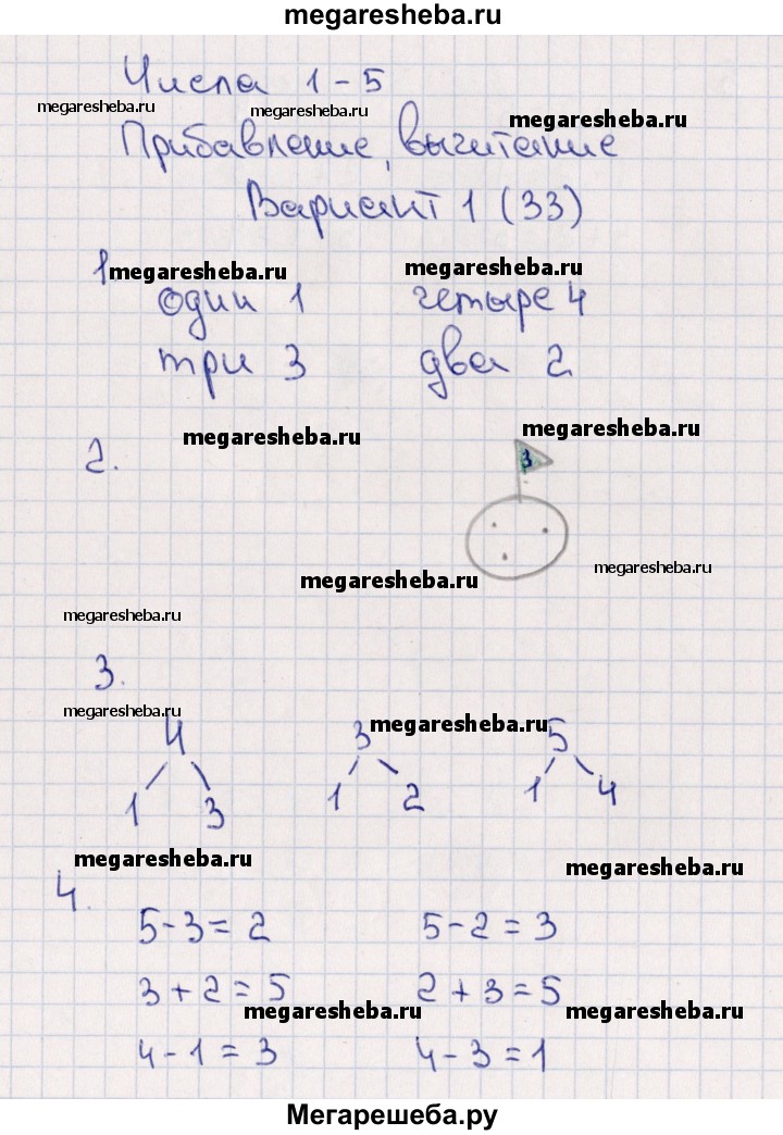 Подробный решебник (ГДЗ) по Математике за 1 (первый) класс самостоятельные работы к учебнику Моро - готовый ответ часть 1 числа 1-5. прибавление, вычитание - Вариант 1. Авторы учебника: Самсонова. Издательство: Экзамен 2014.